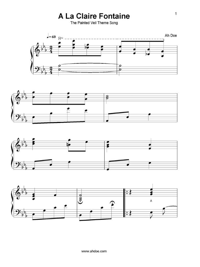 A La Claire Fontaine. The Painted Veil (Theme Complete Piano Sheet) PDF PDF
